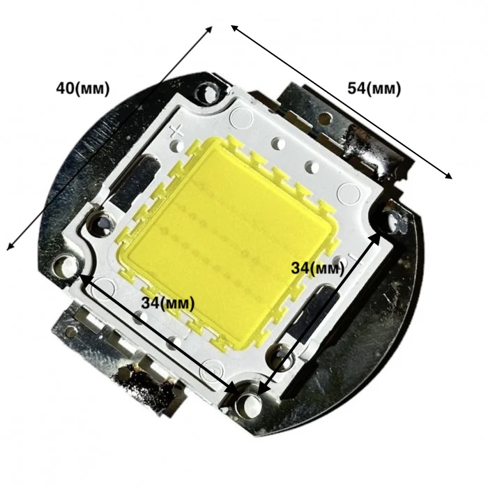 Светодиодная LED матрица 30Вт, рабочее напряжение 30-36В. Световой поток 3000 люмен. Для подключения светодиодной LED матрицы 30Вт понадобится драйвер, который даст ровный стабилизированный постоянный ток и обеспечит комфортные условия для длительной работы, также для длительной службы необходим хороший теплоотвод (радиатор). Такие светодиоды зачастую применяются при изготовлении или ремонте светодиодных прожекторов и фонарей. Так же отлично подойдут для создания самодельных источников света.