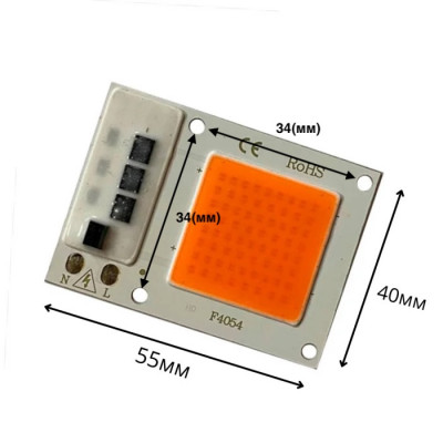 Светодиодный модуль COB LED 35W Full Spectrum для досвечивания растений, рабочее напряжение 190-240В( встроенный драйвер ), световой поток 3500Лм, цветовая температура 380-840nm. Работает от стабилизированного источника питания 220В. Позволяет получить пики энергии в основных областях фотосинтеза и фоторецепторов. Благодаря широкому покрытию дополнительных зон - отлично заменяет солнце при полной светокультуре. Отличное сочетание универсальности, полного спектра (full spectrum) и эффективности. Данный светодиодный модуль выполнен по современной технологии сборки led-модулей Chip-On-Board («чип на плате» или COB). COB модули предназначены для самостоятельной разработки светодиодных ламп, светодиодных светильников, трековых светильников, светодиодных прожекторов и т.д.