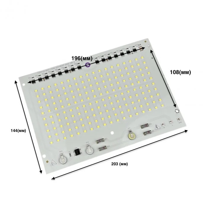 Светодиодная LED матрица 150Ватт SMD2835 120Led 220V, рабочее напряжение 220В. Световой поток 9800-10000 люменов. Для подключения светодиодной LED матрицы 150Вт не понадобится дополнительного драйвера (IC-драйвер смонтирован на корпусе матрицы). Для подключения к сети светодиода, достаточно подсоединить провод с напряжением 220 В, а также для более длительной службы необходим хороший теплоотвод (радиатор). Поддержка диммирования 25-100%. Сверхяркие светодиоды зачастую применяются при изготовлении светодиодных ламп, прожекторов и фонариков. Так же отлично подойдут для создания самодельных источников света, такие как светильники и лампы.