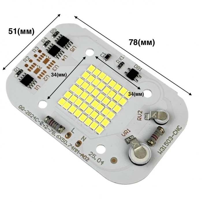Внимание! На подложке светодиодной матрицы по ошибке при нанесении маркировки указана мощность 50 Вт. Фактическая потребляемая мощность составляет 30 Вт – согласно техническим характеристикам изделия.