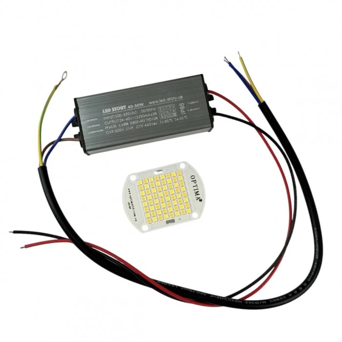 Ремкомплект состоит из светодиодной матрицы 50-70W 145Lm/w 36-45V 5000K и драйвера 40/50W 27-43V 1250 мА IP67.