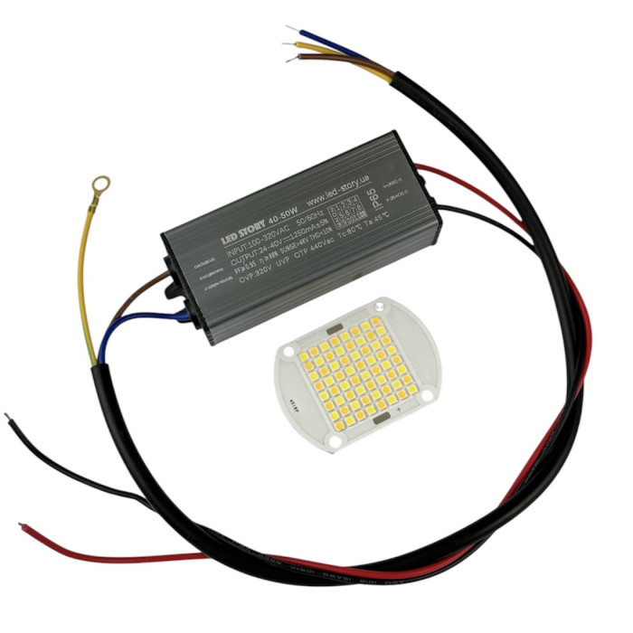 Ремкомплект состоит из светодиодной матрицы 50-70Вт 8750Лм 30-35В 5000K и драйвера 40/50Вт 27-43В 1250 мА IP67.