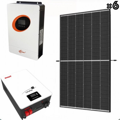Комплект резервного питания, который отлично подойдет для использования в частных домах, а также на территории небольших предприятий. Комплект состоит из шести монокристаллических солнечных панелей мощностью 445 Ватт каждая, а также гибридного инвертора 24V 3600Вт и литий-железо-фосфатный АКБ 25.6V 200Ah емкостью 5120Вт.