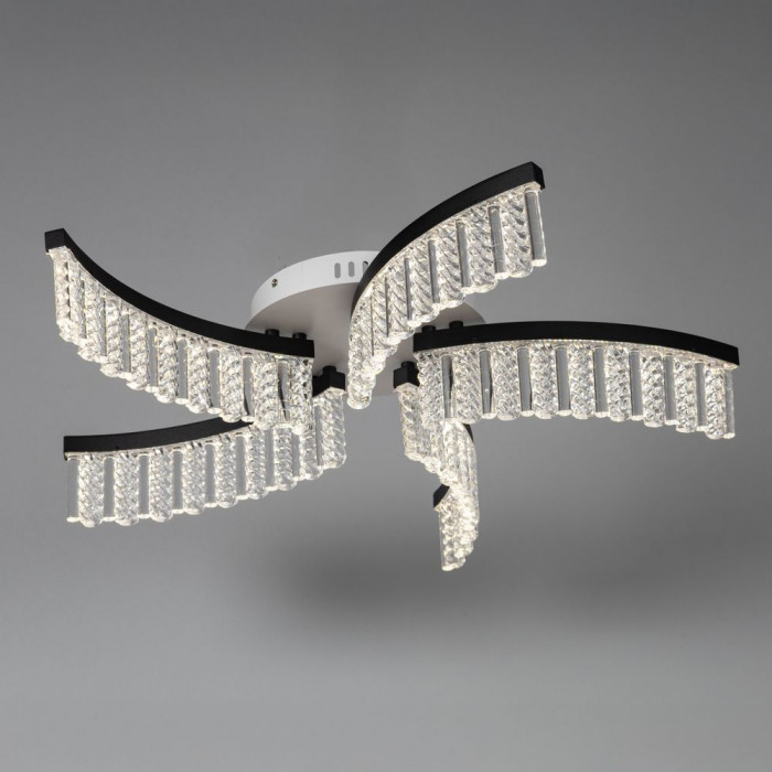 Комбінація білого та чорного кольорів робить люстру універсальною для різних стилів інтер’єру — від хай-тек і мінімалізму до сучасної класики. Металевий корпус і прозорі акрилові вставки гарантують довговічність та надійність конструкції.
