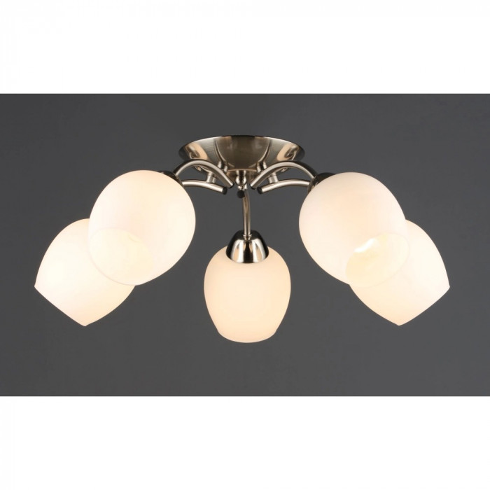 Люстра обладнана п’ятьма стандартними патронами E27, що дозволяє обирати лампи будь-якого типу та регулювати яскравість відповідно до потреб приміщення. Надійні матеріали та продумана конструкція забезпечують довгий термін служби й зручність у щоденному користуванні.
