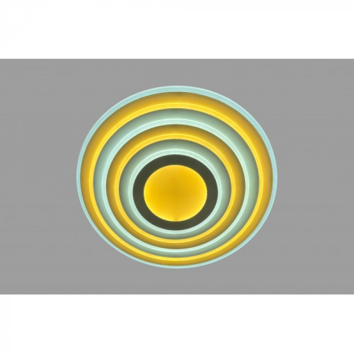 Цей стельовий LED-світильник вражає графічною точністю: кільця світла формують гармонійну концентричну композицію, що нагадує сучасну інтерпретацію сонячного диска. Потужність 130W забезпечує ефективне освітлення площі 17–20 м², а змінна температура світіння (3000K–4000K–6000K) дозволяє легко змінювати атмосферу — від теплого затишку до холодної ясності. Вбудований димер дає змогу регулювати яскравість і колір світла без зайвих зусиль — усе налаштовується дистанційно, в один дотик. Кріплення на планку забезпечує надійність, а висота 7 см робить модель ідеальною для приміщень із низькими стелями. Матеріали — метал і акрил — гарантують довговічність і чистоту світлового малюнка. Ширина 50 см дозволяє світильнику стати центральним елементом інтер’єру, адаптуючись до вашого ритму життя.
