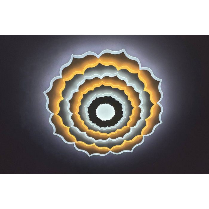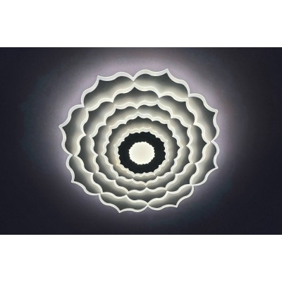 Цей стельовий LED-світильник — справжній арт-об’єкт, що поєднує декоративну симетрію з функціональною потужністю. Його форма нагадує квітку, з багатошаровими контурами, які створюють ефект глибини та об’ємного світіння. Завдяки потужності 150W він легко освітлює площу 17–20 м², а змінна температура світла (3000K–4000K–6000K) з димером за допоомгою пульта дозволяє налаштувати атмосферу — від теплого затишку до холодної концентрації. Кріплення на планку забезпечує надійність, а висота 7 см робить модель ідеальною для приміщень із низькими стелями. Матеріали — метал і акрил — гарантують довговічність і чистоту світлового малюнка. Ширина 50 см дозволяє світильнику стати центральним елементом інтер’єру.