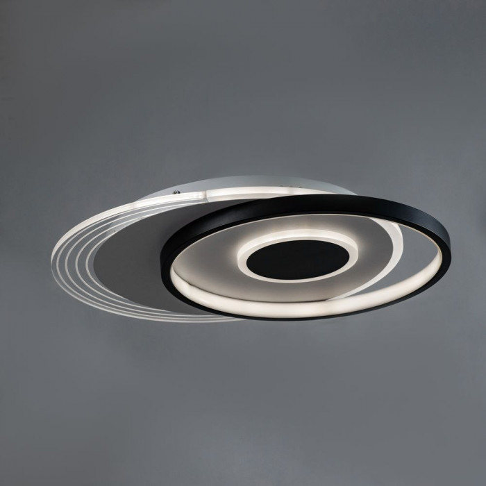 Світлодіодна люстра у білому та чорному виконанні — це сучасний акцент для інтер’єру, який поєднує технологічність і стиль. Її дизайн з трьома джерелами світла створює багаторівневий ефект: світло рівномірно розсіюється крізь акрилові елементи, підкреслюючи геометрію та динаміку форми. Контрастна арматура з металу додає виразності, а компактні габарити (довжина 38 см, ширина 47 см, висота 8 см) роблять модель універсальною для різних приміщень.