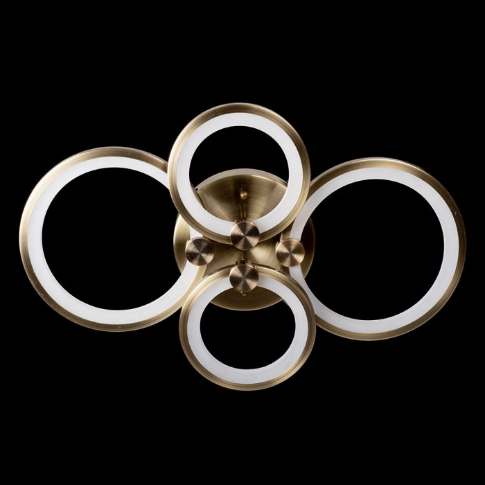 Світлодіодна люстра з чотирма кільцями в бронзовому виконанні — це поєднання сучасної геометрії та теплих металевих відтінків. Завдяки глибокому кольору каркаса модель виглядає виразно, але не нав’язливо, додаючи інтер’єру елегантності та балансу. Акрилові розсіювачі забезпечують м’яке, рівномірне світло, яке не створює тіней і не засліплює.