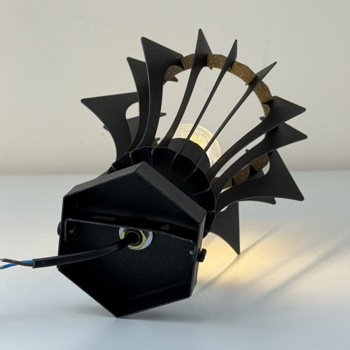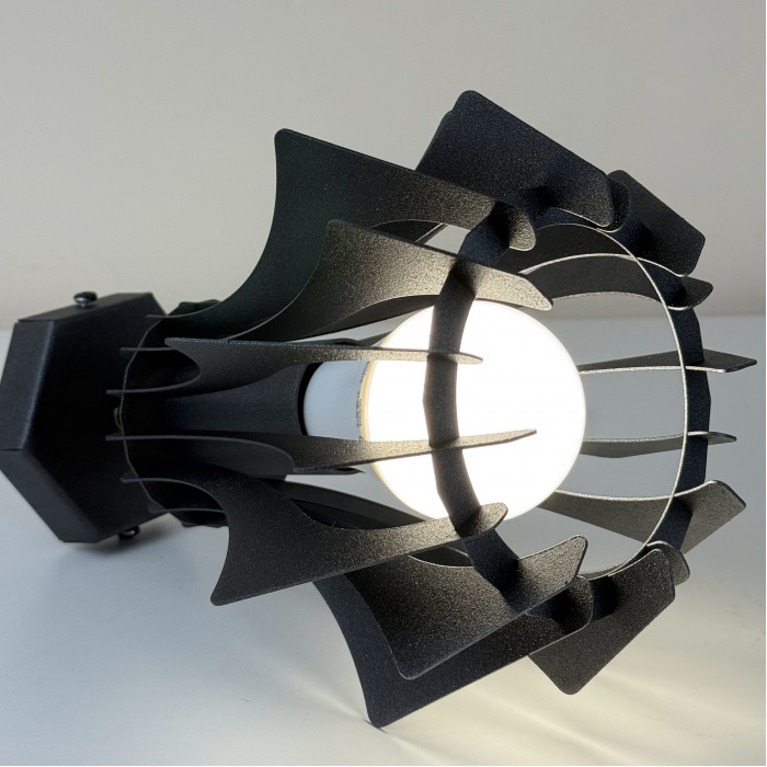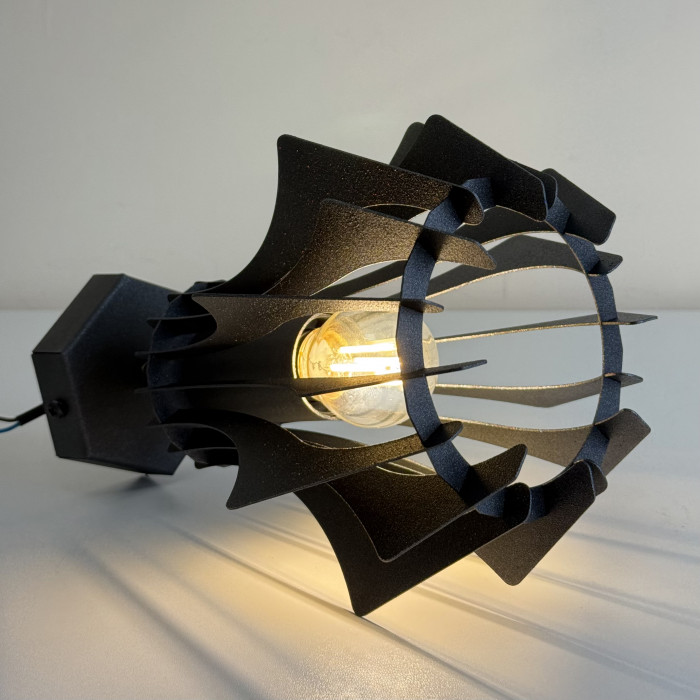 Нестандартний дизайн, стильна геометрія та гра світла — цей настінний світильник-бра створений для тих, хто цінує в інтер’єрі оригінальні акценти та характерні деталі. Чорний металевий корпус у вигляді багатогранного плафону виглядає сучасно й водночас затишно, а завдяки відкритій конструкції світло проходить м’яко, формуючи цікаві тіні на стінах.