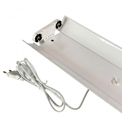 Комплект включає кабель живлення 1,5 м з вимикачем, який дозволяє швидко підключити світильник до мережі 220 В. Накладний монтаж і лаконічний білий дизайн роблять його універсальним для офісів, кухонь, магазинів, коридорів, гаражів, а також для невеликого фітоосвітлення кімнатних рослин чи теплиць.