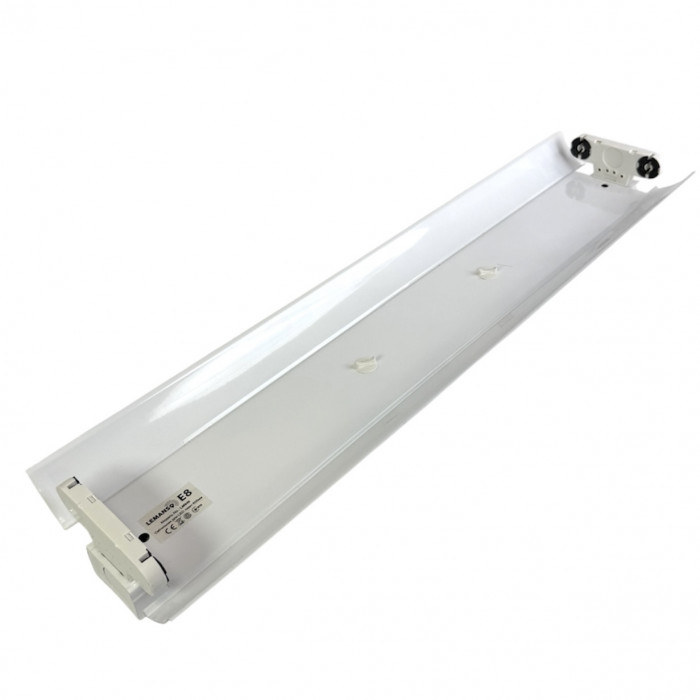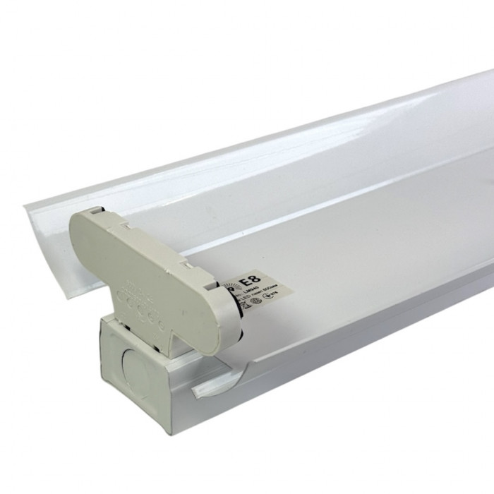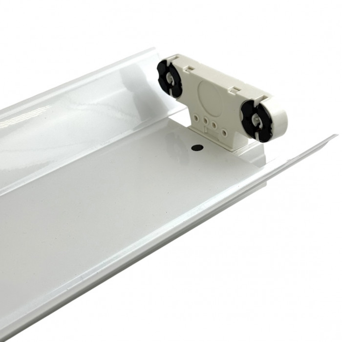 Лінійний накладний світильник на 2 LED-лампи з цоколем G13 (T8) — практичне рішення для якісного освітлення офісів, магазинів, кухонь, коридорів і гаражів. Оснащений розсіювачем, який забезпечує рівномірний світловий потік без різких тіней і засліплення, створюючи комфортне освітлення для роботи та щоденного використання. Міцний металевий корпус гарантує довговічність і надійність конструкції, а торцеві кріплення ламп та бокові направляючі сприяють ефективному розподілу світла. Світильник працює від мережі 220 В, має потужність 18 Вт та ступінь захисту IP20, призначений для сухих приміщень. Лаконічний білий дизайн і накладний монтаж забезпечують просту установку та універсальність у застосуванні.