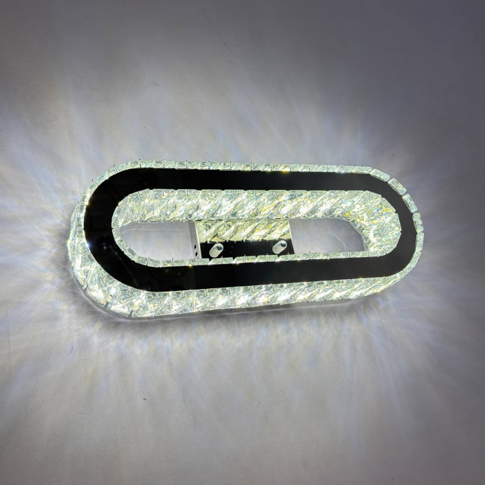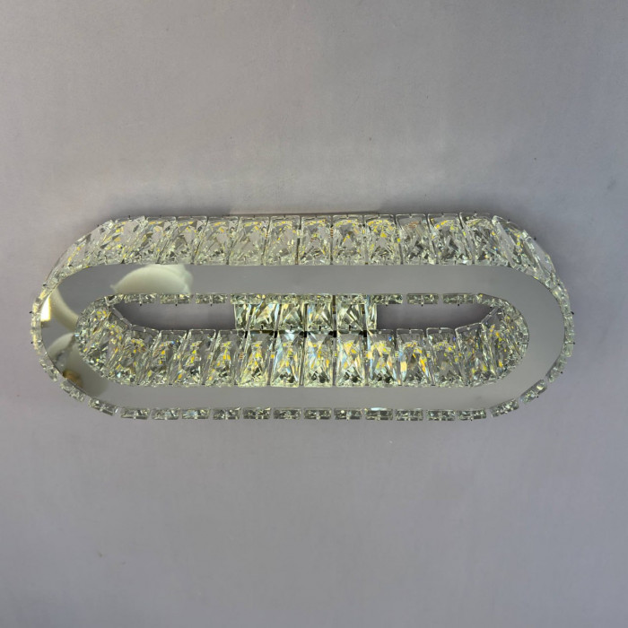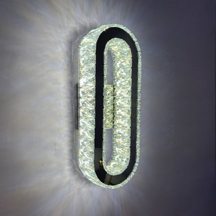 Цей стильний настінно-стельовий світильник поєднує міцність металу, прозорість скла та вишуканий блиск кришталю, створюючи ефектну гру світла й відблисків. Завдяки продуманій конструкції його можна встановити як на стелю, так і на стіну — вибір за вами.