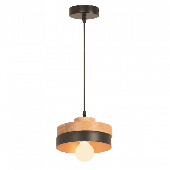 Цей підвісний світильник поєднує природну текстуру дерева та стриману елегантність чорного металу, створюючи теплий і сучасний акцент для будь-якого інтер’єру. Навіть вимкнений, він привертає увагу завдяки контрасту матеріалів і лаконічній формі.