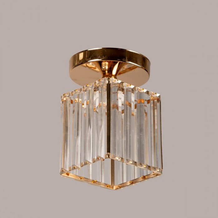 Стельовий світильник на одне джерело світла з металевим каркасом золотого кольору та вертикальними скляними вставками — компактне і декоративне рішення для сучасного інтер’єру. Патрон E27 дозволяє використовувати світлодіодні, енергозберігаючі або лампи розжарювання потужністю до 60 Вт. Габарити: ширина — 13 см, висота — 17 см. Кріплення до стелі на планку, тип вимикача — настінний, ступінь захисту IP20. Завдяки призматичному ефекту скляних елементів світильник створює м’яке розсіювання світла та додає простору вишуканості.