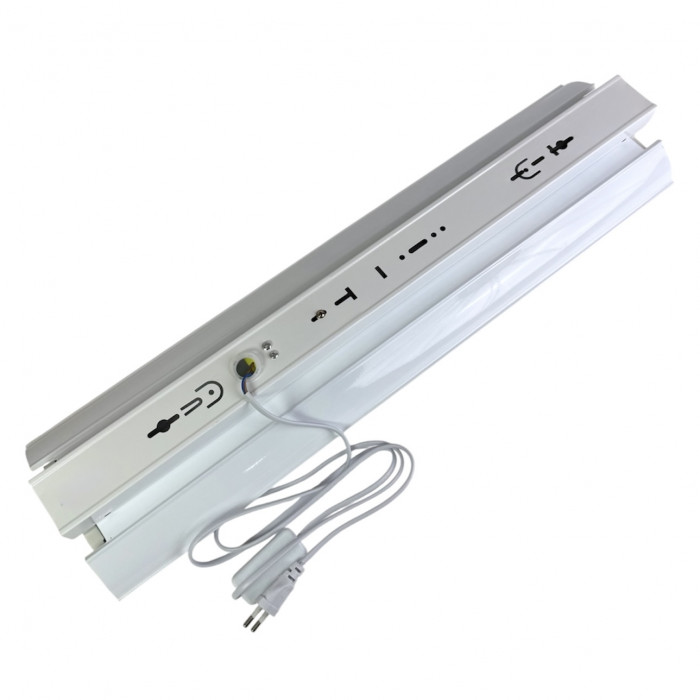 Світильник працює від стандартної мережі 220 В і має ступінь захисту IP20, що робить його оптимальним для використання в сухих приміщеннях — на підвіконнях, стелажах для розсади, у теплих балконах, гаражах або підсобних приміщеннях. Кабель живлення довжиною 1,5 м із вбудованим вимикачем забезпечує зручне керування освітленням без додаткових пристроїв.