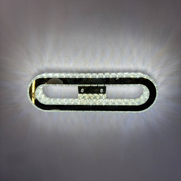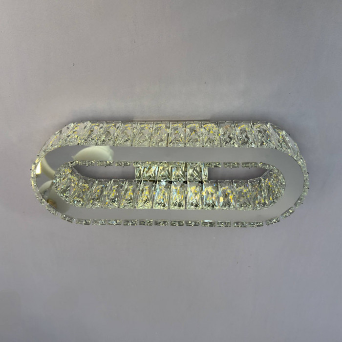 Цей настінно-стельовий світильник поєднує міцність металу, прозорість скла та витончений кришталевий блиск, створюючи дивовижну гру світла й тіней. Його можна встановити як на стіну, так і на стелю — саме так, як вам зручно!