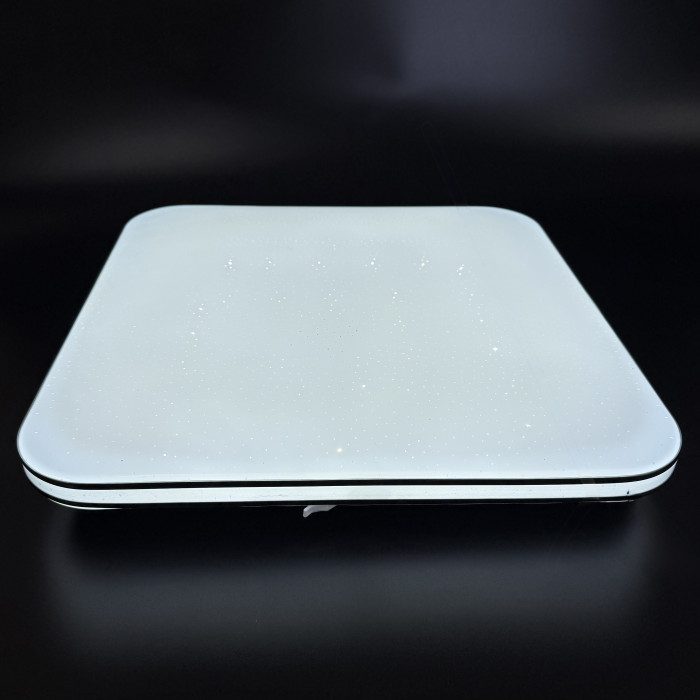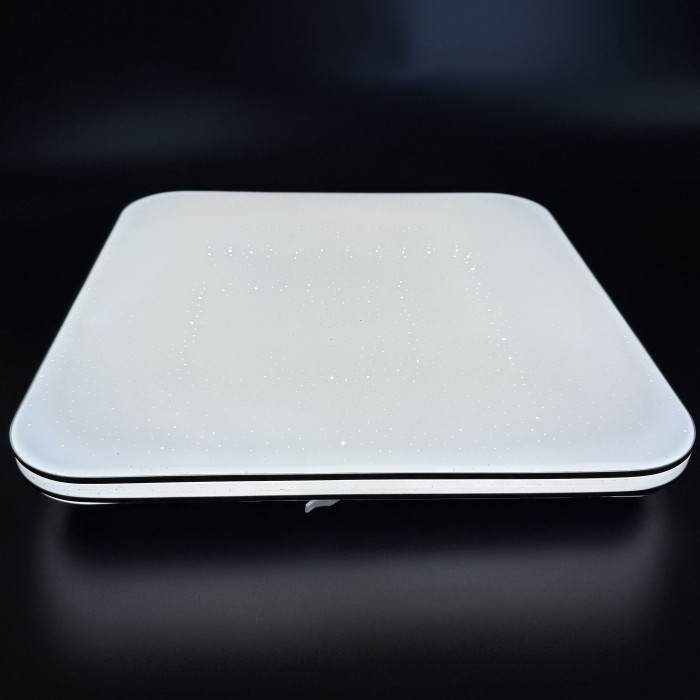 Ця модель має строгий дизайн з двома чорними смугами по периметру, що розставляють акценти і підкреслюють сучасний стиль люстри. Ефект «зоряного неба» створює привабливу атмосферу, але не відволікає від основного завдання - забезпечення комфортного, рівномірного освітлення.