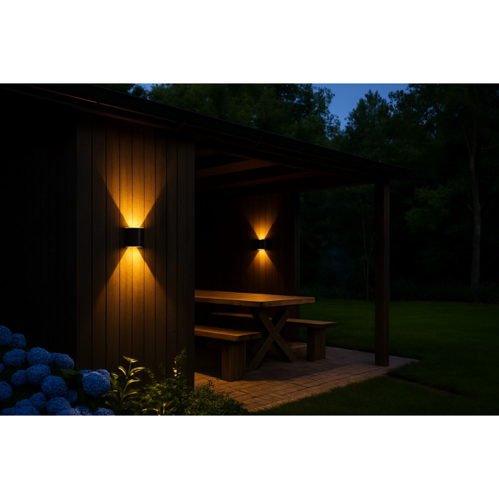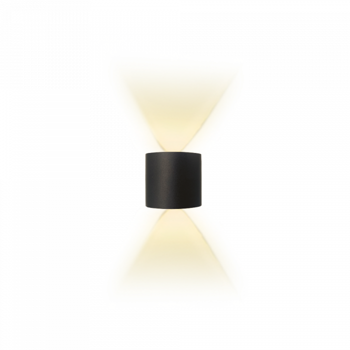 Світильник 2Вт 3000К чорний – фасадний настінний світлодіодний світильник для вулиці, призначений для декоративного та функціонального підсвічування екстер’єру: приватних будинків, котеджів, кафе, готелів, терас і парканів. Встановлюється на вертикальні поверхні (стіни, огорожі, колони тощо), що дозволяє вигідно підкреслити архітектуру будівлі у темний час доби. Світильник формує ефектне світло вгору та вниз, створюючи стильний світловий акцент на фасаді. Лаконічний корпус чорного кольору виконаний з міцного пластику, що добре витримує зовнішні умови. Завдяки класу захисту IP54, світильник надійно працює на вулиці, захищений від пилу та вологи.
