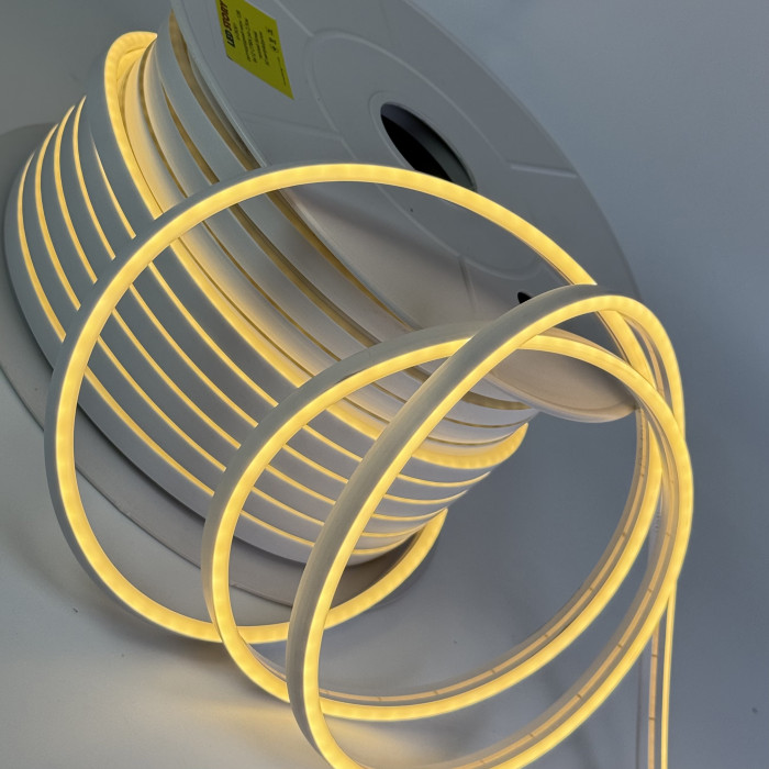 Теплий білий LED неон (3000K) створює затишну та комфортну атмосферу, ідеально підходячи для декоративної підсвітки інтер’єрів, вітрин, меблів, кафе та готелів. Завдяки 120 світлодіодам SMD 2835 на метр стрічка формує рівномірне світло без точкових засвітів, а CRI 80 забезпечує природне відображення кольорів. Потужність 8 Вт/м, робота від 12 В та термін служби до 50 000 годин гарантують економічність і надійність. Гнучкий корпус з силікону з домішками ПВХ (розмір 6×12 мм) дозволяє повторювати будь-які вигини та контури, а кратність різки 2,5 см (3 LED) забезпечує зручний монтаж. Стрічка має ступінь захисту IP65 та працює в температурному діапазоні від -25°C до +40°C, що робить її придатною як для приміщень, так і для напіввідкритих просторів. Теплий білий LED неон — це практичне, енергоефективне та стильне рішення для створення акуратних світлових акцентів та затишного освітлення.